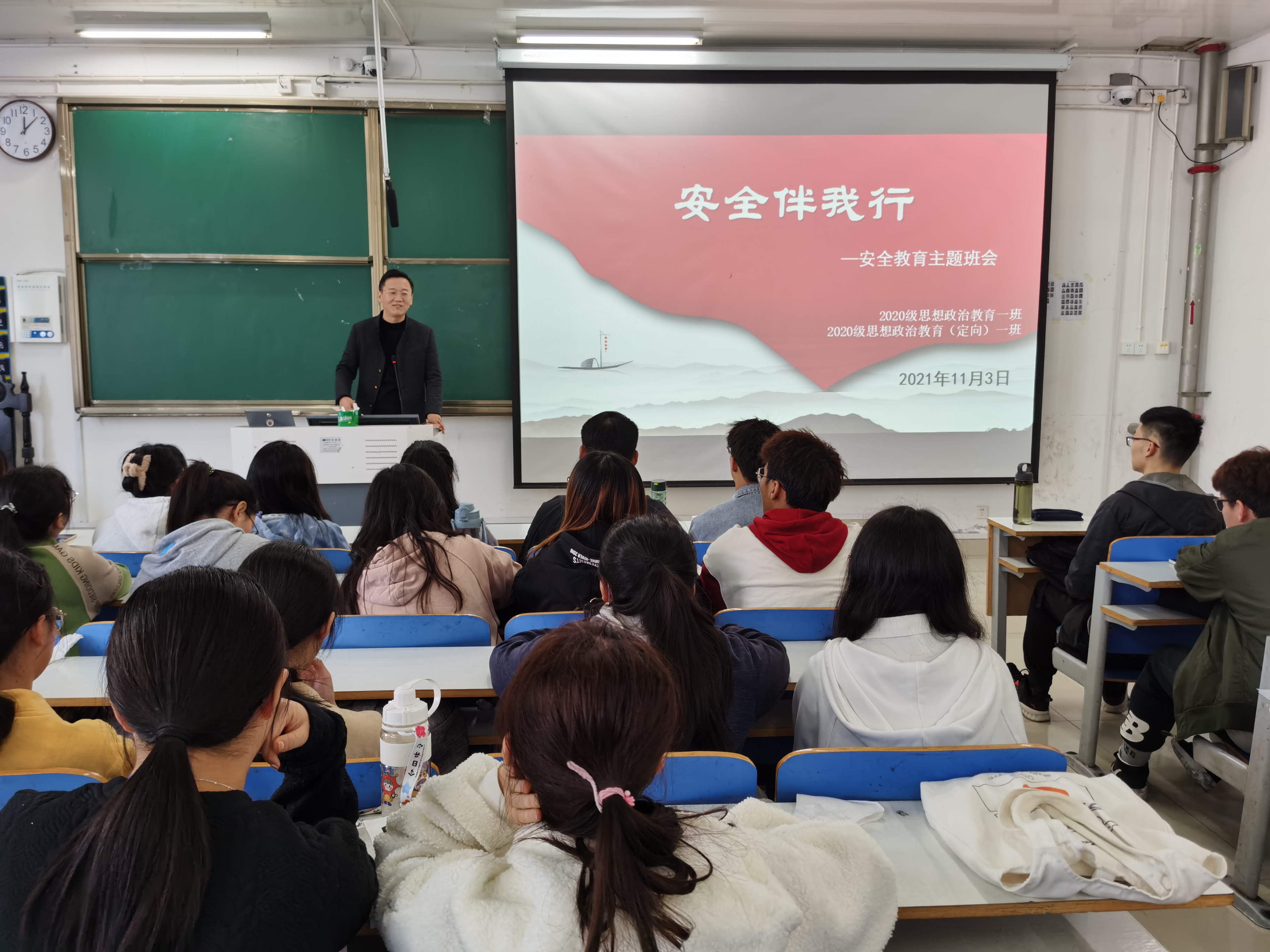11月3日上午,fun88乐体育官网体育2020级思想政治教育一班、定向一班在社科楼516教室召开“安全伴我行”安全教育主题班会。辅导员曹栋及2020级思想政治教育一班、定向一班全体同学参加了本次班会。班会由辅导员曹栋主持。