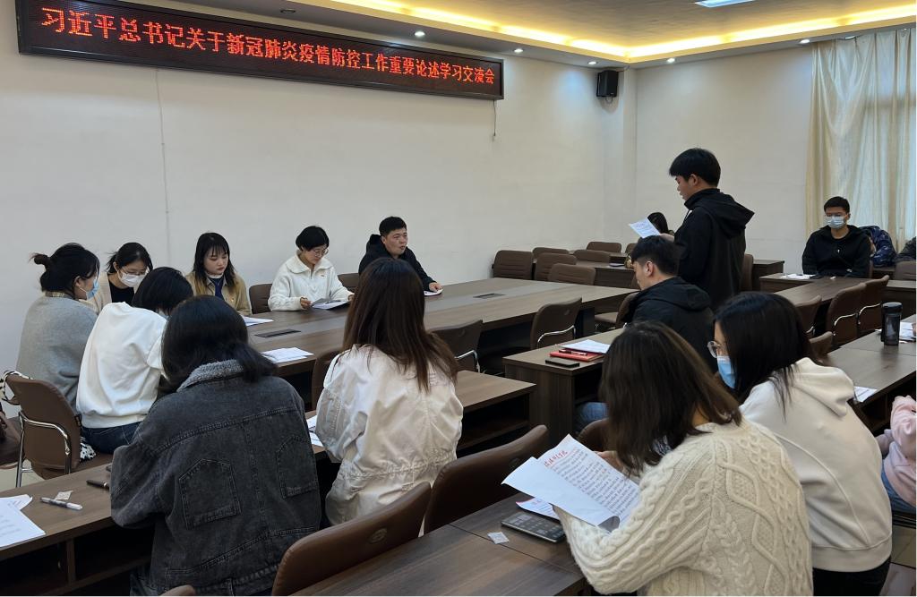 会议伊始,郑晨霞同志带领全体党员重温习近平总书记关于新冠肺炎疫情防控工作的系列重要论述,通过系统地了解、学习,大家一致认为习总书记的系列讲话充分体现了我国以人民为中心的发展思想,其内涵丰富、思想深刻、要求明确,是习近平新时代中国特色社会主义思想的现实教科书。与会党员结合自身实际,积极发表学习心得。王澳远同志表示,习近平总书记多次针对疫情防控工作作出指示,始终强调要维护好人民的根本利益,反映了我国社会主义制度的优势,相信在中国共产党的领导下,全国各族人民共同抗疫,这场疫情防控的阻击战终将取得完全胜利。赵影同志表示,自新冠肺炎疫情发生以来,习近平总书记高度重视,亲自部署,总书记的系列讲话指出了疫情防控工作带来的挑战,同时也带给我们精神上的鼓舞。李婷婷同志表示,习总书记对疫情防控工作作出的指示基于实际,对依法防控、科学防控起着重要的指导作用,只有坚持中国共产党的坚强领导,才能在各种困难风险面前处变不惊、迎难而上。
