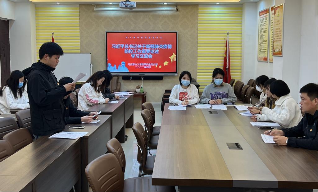 为深入学习贯彻习近平总书记关于做好疫情防控工作的重要讲话及指示精神,帮助fun88官网研究生党员增强“四个意识”,坚定“四个自信”,做到“两个维护,4月2日下午,fun88官网研究生党支部于社科楼323会议室开展集体学习交流会,会议由支部书记郑晨霞主持。