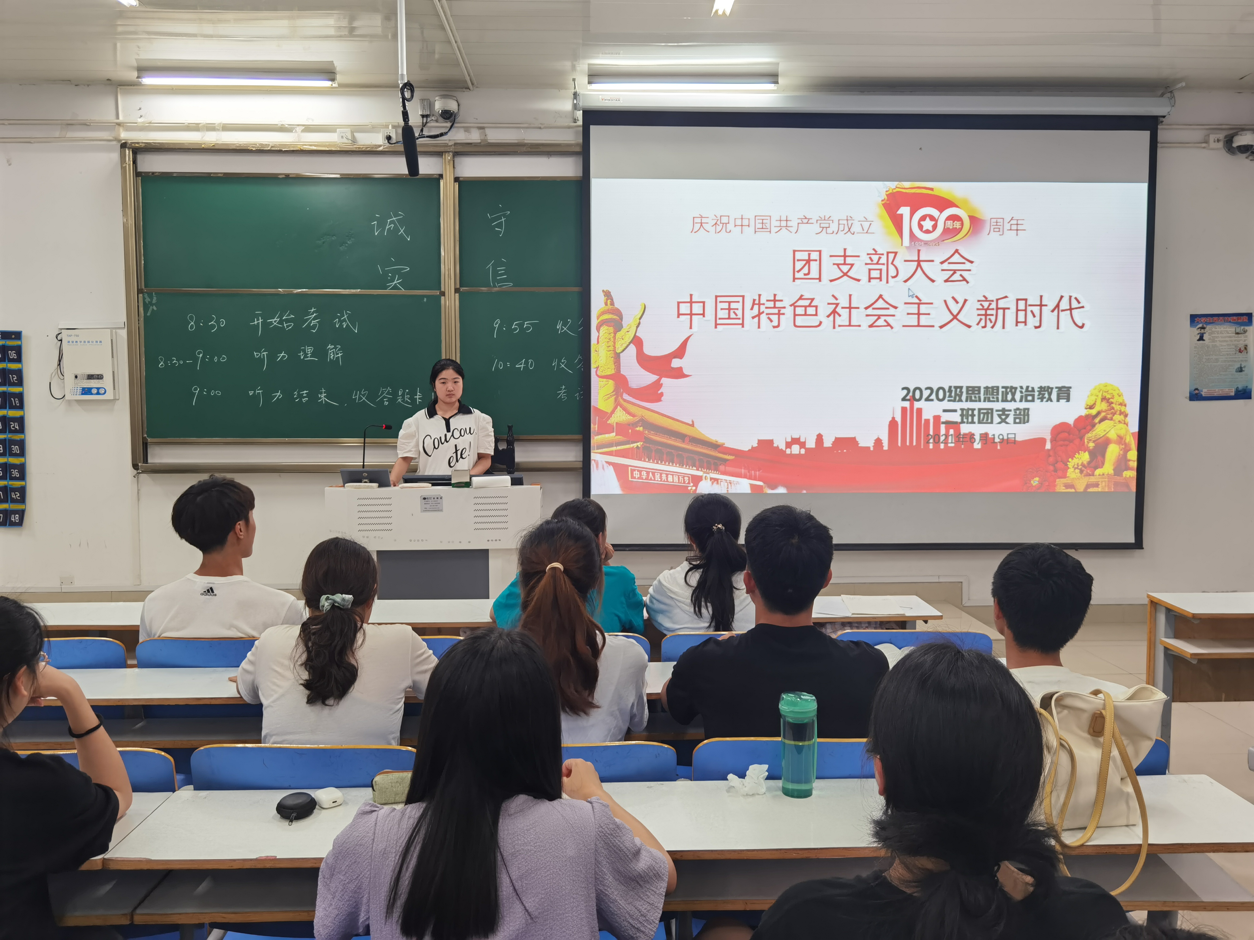6月19日晚,fun88乐体育官网体育2020级思想政治教育二班、定向二班学习习近平新时代中国特色社会主义思想团支部大会在社科楼514教室顺利召开。二班、定向二班全体团员参与会议。大会由孙雪主持。
