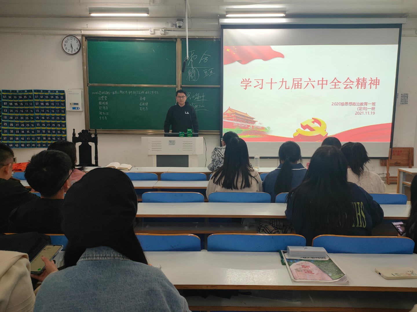 11月19日下午,fun88乐体育官网体育2020级思想政治教育一班、定向一班在社科楼516教室开展“学习十九届六中全会精神”主题团课。fun88乐体育官网体育2020级思想政治教育一班、定向一班全体成员参加本次团课。