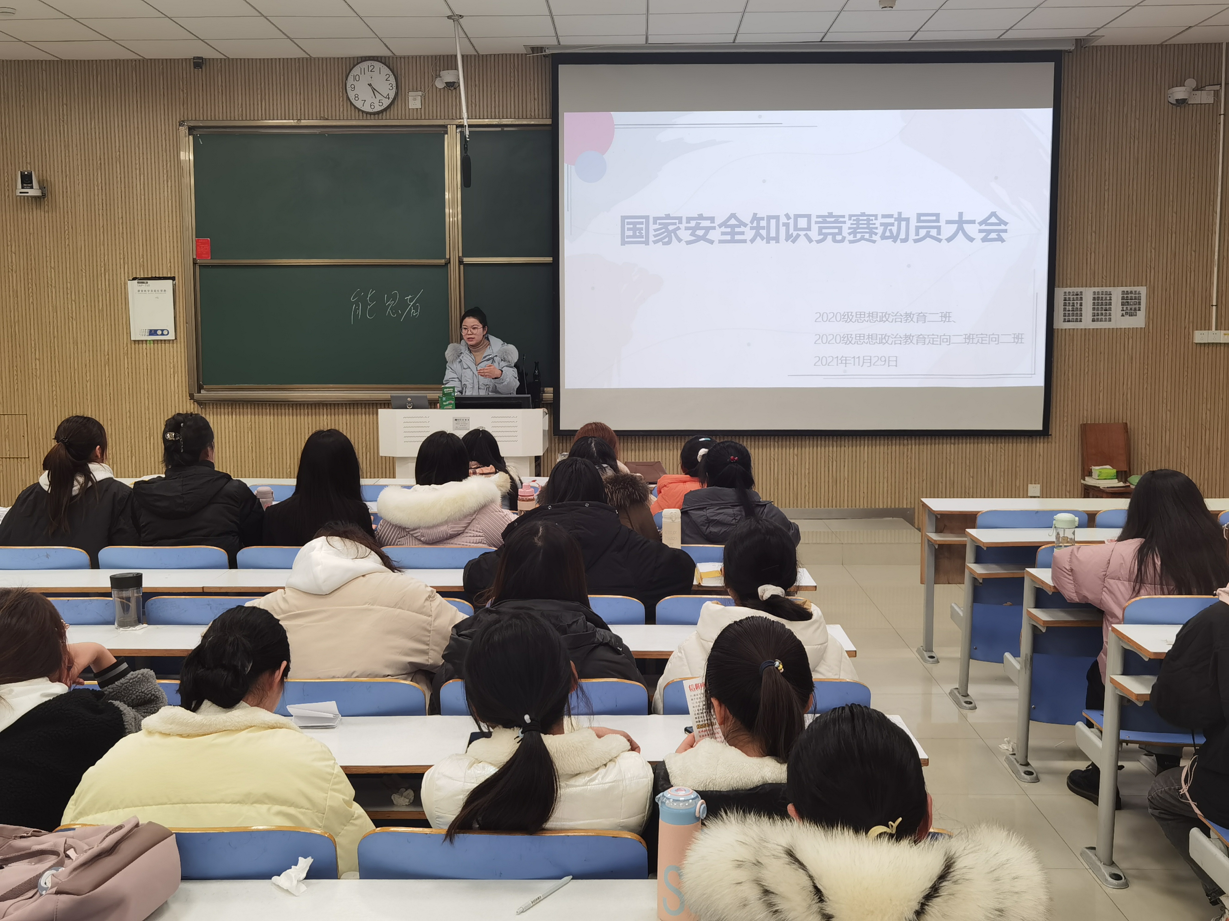 11月29日下午,fun88乐体育官网体育2020级思想政治教育二班、定向二班在社科楼515教室召开国家安全知识竞赛动员大会。辅导员高小佳、2020级思想政治教育二班、定向二班全体同学共同参与本次大会。会议由高小佳主持。