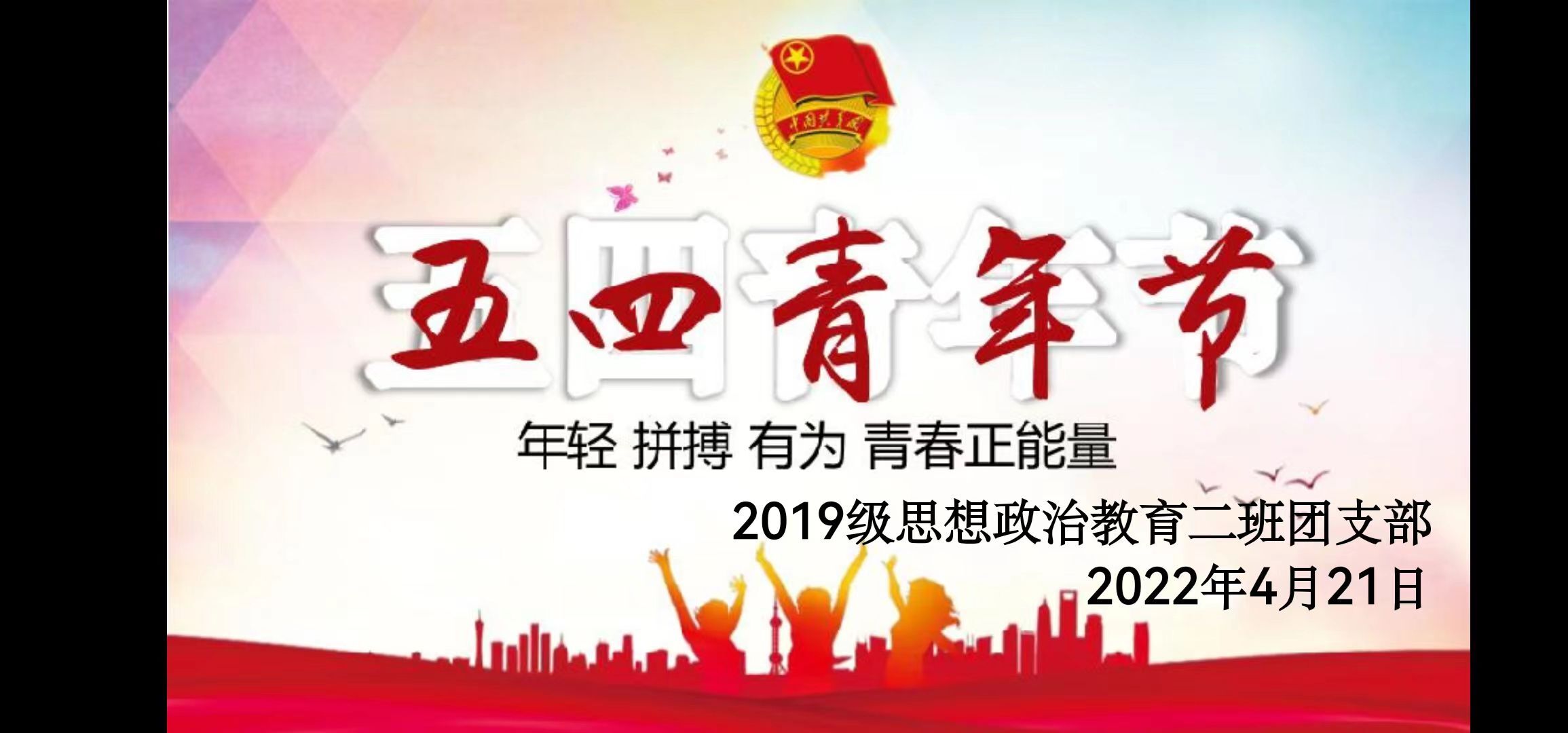 不忘初心来时路,砥砺奋进新征程,为纪念五四运动103周年,4月21日上午,fun88官网2019级思想政治教育二班于腾讯会议召开“五四青年节—年轻 拼搏 有为 青春正能量”主题团课。2019级思想政治教育二班全体成员共同参会,会议由团支书孙雅娴主持。